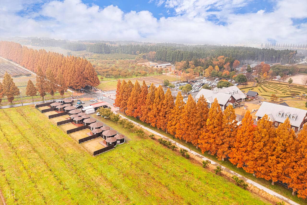 通往牧野高原的道路上,兩旁栽種了長達2.4公里、約500株的水杉。春季新綠、夏季翠綠、秋季紅葉、冬季白雪,每個季節都帶來無與倫比的美景。無論何時到訪,水杉林蔭大道總是壯觀無比,入住這壯麗景色中的奢華住宿,享受無與倫比的珍貴體驗。